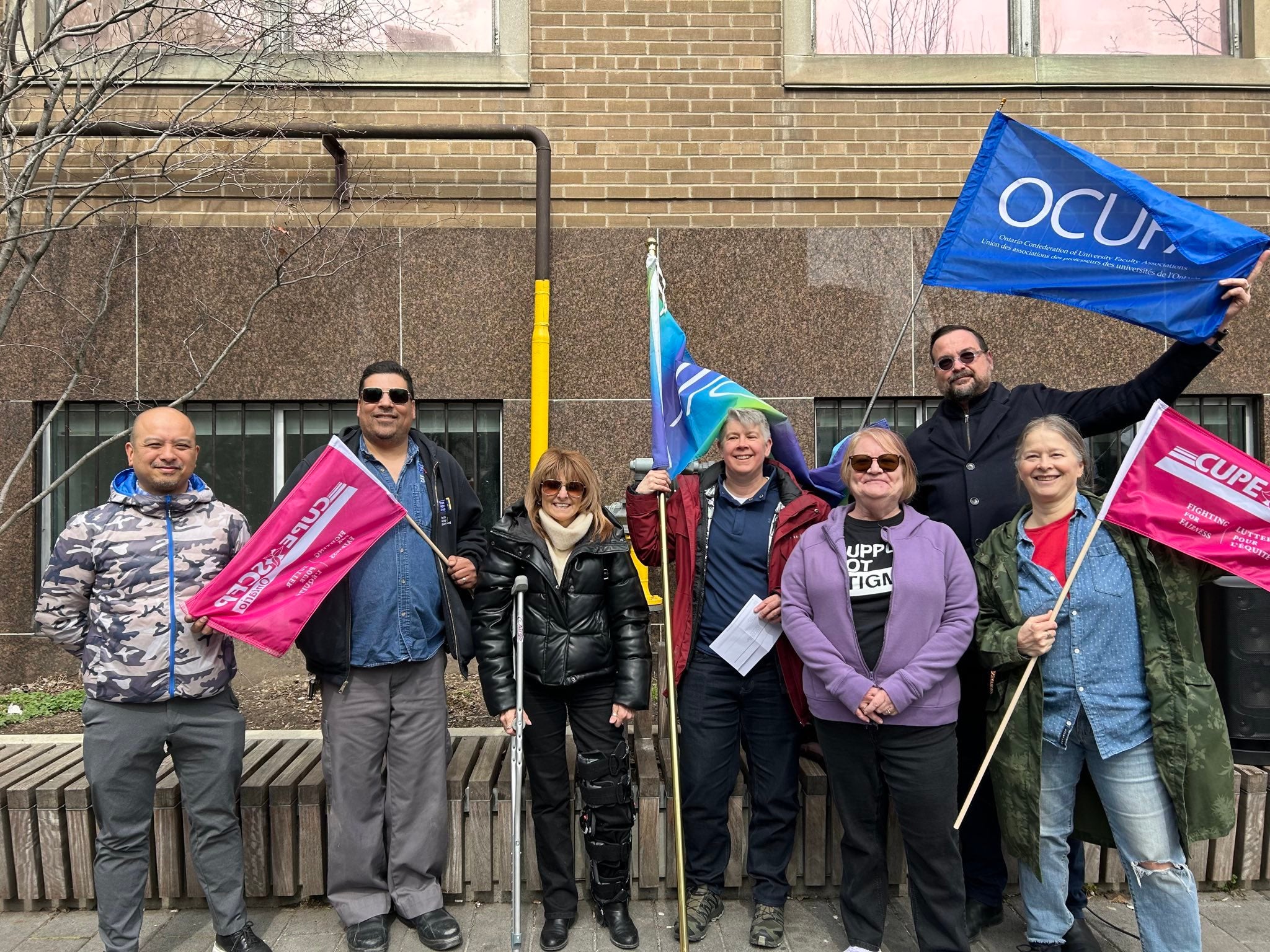 Great news – we got a good turnout of CUPE 233 members at our joint information picket yesterday afternoon asking the university to address our needs for pension fairness and inflationary wage increases in bargaining. We were joined by OPSEU 596, CUPE 3904, TMAPS, and TFA representing the TMU labour and student community, and got some earned media coverage about our bargaining. Thank you to all CUPE 233 members that showed up to this event.